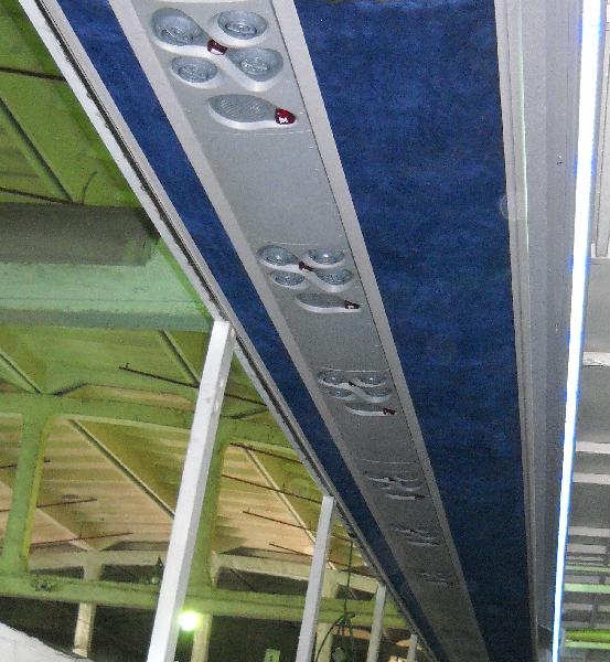 on the ceiling or in the handrail of the system. The LED stripe has the