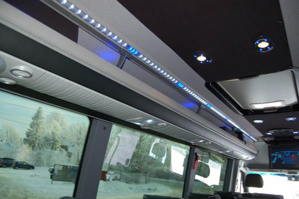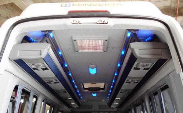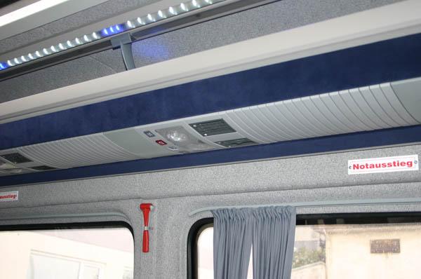 Service Sets; The SUSPENDED® Luggage Rack & Air Channel System includes service sets which have individual reading light and air jet for each passenger with optional loudspeaker. The service sets are connected to each other via spacers, which gives a continuous coach feeling to the minibus passengers. Each service set may have the optional “stop” or “hostess/service” buttons. Different types of service sets are available upon request.
